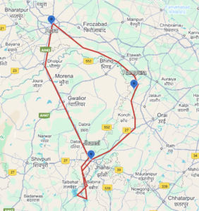 Dawn breaks for an epic early-morning start—brace for the longest, most demanding leg! Blast south through a mix of paved and unpaved canals (smart shortcuts to dodge traffic), rugged tracks, and wild scrub jungle. The route skirts the dramatic confluence (“sangam”) of the Yamuna and Chambal rivers—echoing the legendary badlands once ruled by infamous dacoits. Feel the thrill as you navigate these ravine-carved landscapes!